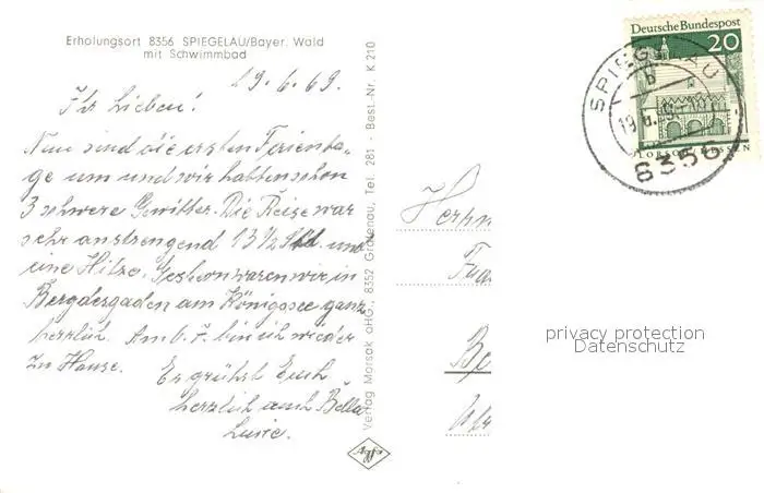 Spiegelau Panorama Schwimmbad Spiegelau postalisch gelaufen 1969 Erhaltung siehe scans [WerneD78] WernPID7