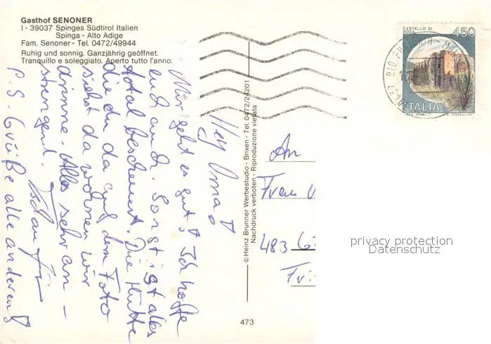 Spinges Gasthaus Senoner Spinges postalisch gelaufen nach 1965 Erhaltung siehe scans [LiesaD40] LiesID40