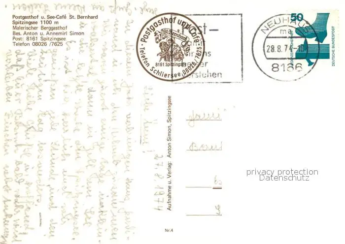 Spitzingsee Postgasthof See Cafe St Bernhard Spitzingsee postalisch gelaufen 1974 Erhaltung siehe scans [WerneD78] WernPID7