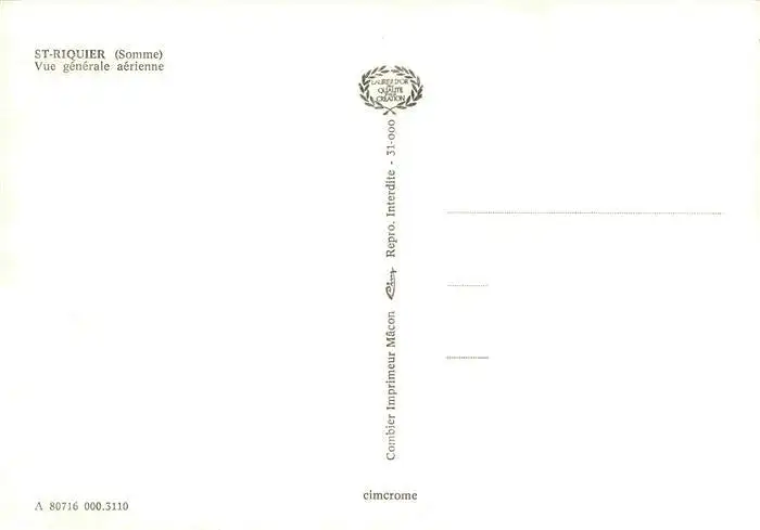 St-Riquier_Somme Vue générale aérienne Eglise postalisch nicht gelaufen nach 1965 Fliegeraufnahme Erhaltung siehe scans [FriedD77] Fliegeraufnahme Frierer