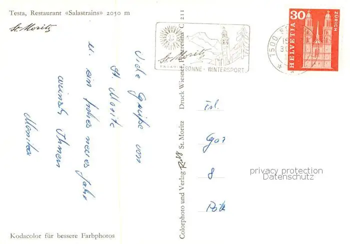 St_Moritz_GR Testa Restaurant Salastrains St_Moritz_GR postalisch gelaufen nach 1965 Erhaltung siehe scans [FriedD77] Frierer