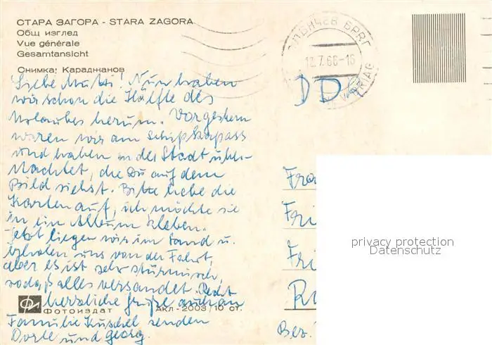 Stara_Zagora_BG Vue générale postalisch gelaufen 1966 Erhaltung siehe scans [FriedD77] Frierer