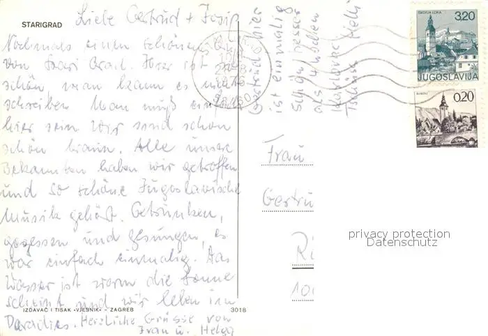 Starigrad Landkarte Strand Kueste Starigrad postalisch gelaufen 1976 Erhaltung siehe scans [FriedD77] Frierer