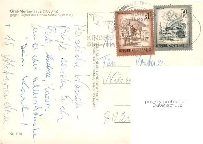 Steiermark Graf Meran Haus mit der Hohen Veitsch Steiermark postalisch gelaufen nach 1965 Erhaltung siehe scans [WerneD78] WernPID7