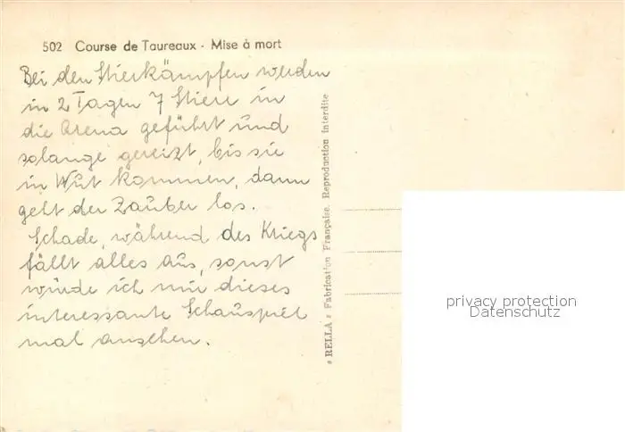 Stierkampf Course de Taureaux Mise a Mort postalisch nicht gelaufen 1921-1965 Erhaltung siehe scans [PaolaD17] PaolPID1