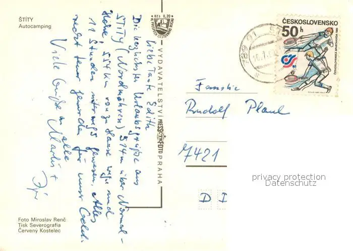 Stity_Czechia Autocamping Details postalisch gelaufen nach 1965 Erhaltung siehe scans [FriedD77] Frierer