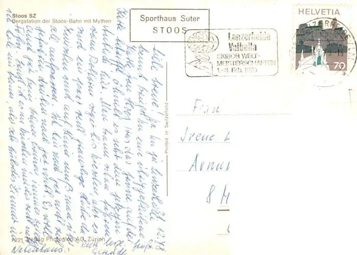 Stoos_SZ Bergstation der Stoos-Bahn mit Mythen Stoos_SZ postalisch gelaufen 1978 Erhaltung siehe scans [FriedD77] Frierer
