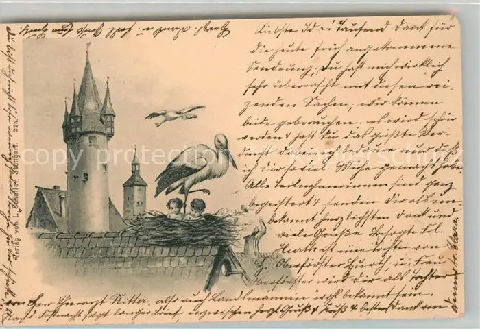 Storch Babys Storch postalisch gelaufen 1900 Erhaltung siehe scans [PaolaD17] PaolPID1