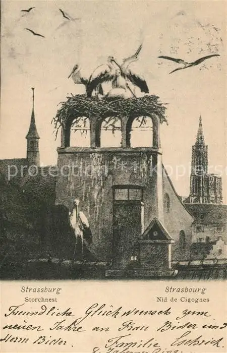 Strasbourg_Alsace Storchennest Strasbourg Alsace postalisch gelaufen 1905 Erhaltung siehe scans [KathaD81] Kathoren