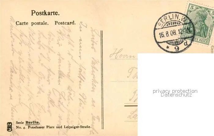 Strassenbahn Berlin Strassenbahn postalisch gelaufen 1908 Erhaltung siehe scans [PaolaD17] PaolPID1