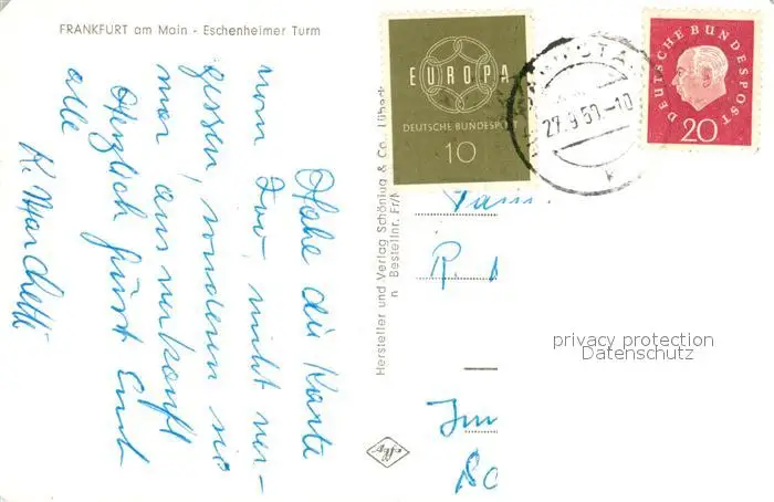 Strassenbahn Frankfurt am Main Eschenheimer Turm postalisch gelaufen 1921-1965 Erhaltung siehe scans [PaolaD17] PaolPID1