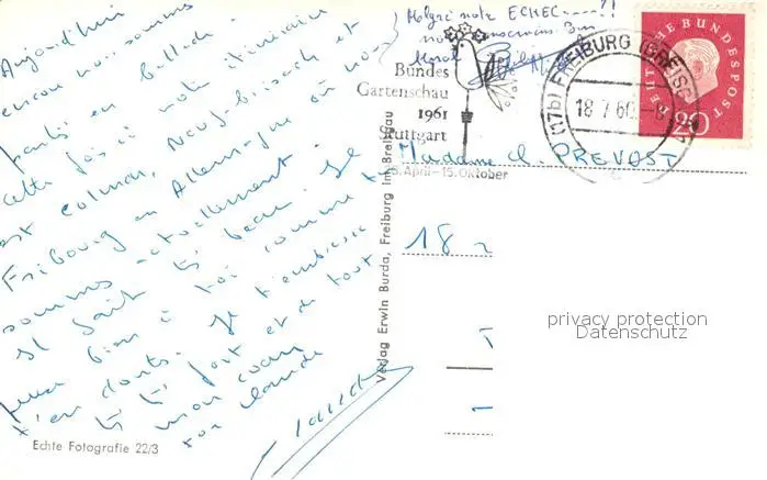 Strassenbahn Freiburg Breisgau postalisch gelaufen 1960 Erhaltung siehe scans [PaolaD17] PaolPID1