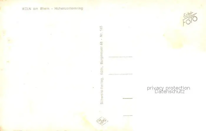 Strassenbahn K?ln am Rhein Hohenzollernring postalisch nicht gelaufen 1921-1965 Erhaltung siehe scans [PaolaD17] PaolPID1