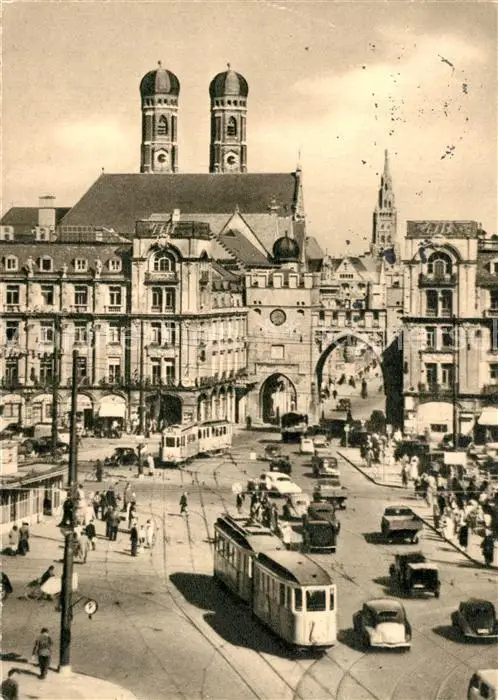 Strassenbahn M?nchen Karlsplatz postalisch gelaufen 1957 Erhaltung siehe scans [PaolaD17] PaolPID1