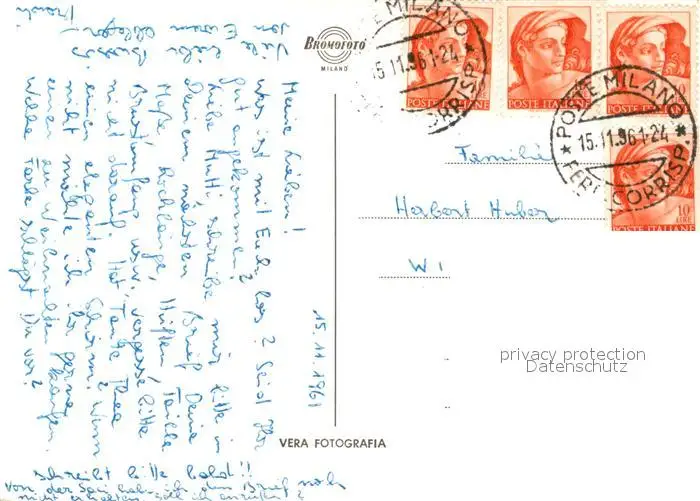 Strassenbahn Milano Piazza Cordusio postalisch gelaufen 1961 Erhaltung siehe scans [PaolaD17] PaolPID1