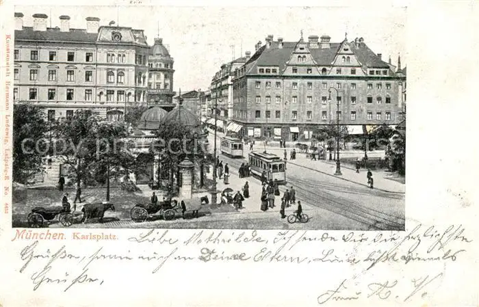 AK / Ansichtskarte Strassenbahn Muenchen Karlsplatz Strassenbahn