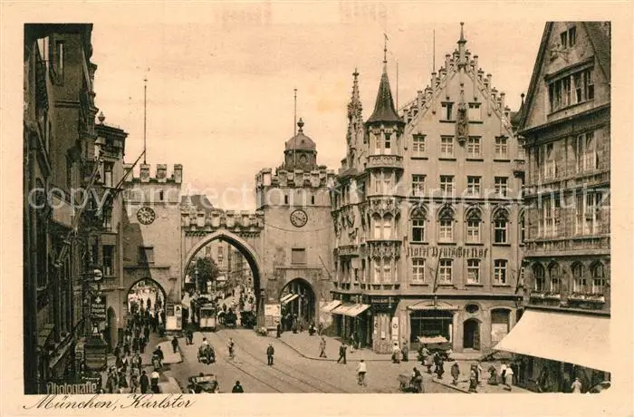 AK / Ansichtskarte Strassenbahn Muenchen Karlstor