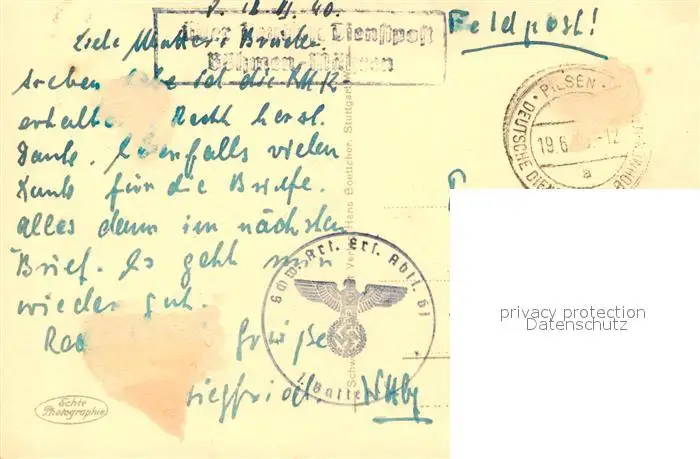 Strassenbahn Stuttgart Koenigsbau Strassenbahn postalisch gelaufen 1940 Feldpost Erhaltung siehe scans [PaolaD17] Feldpost PaolPID1