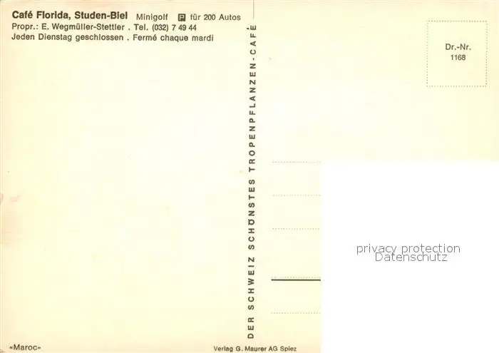 Studen_BE Cafe Florida Studen_BE postalisch nicht gelaufen nach 1965 Erhaltung siehe scans [WerneD78] WernPID7