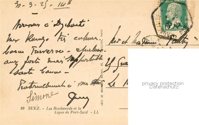 Suez_Canal_de Boulevard and Railway to Port Said postalisch gelaufen 1925 Erhaltung siehe scans [WerneD78] WernPID7
