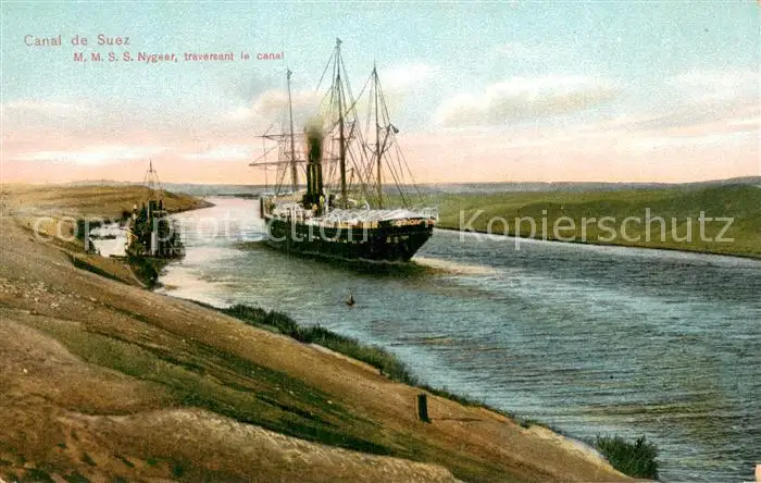 Suez_Canal_de_Egypt M.M.S.S. Nygeer traversant le canal postalisch nicht gelaufen bis 1920 Erhaltung siehe scans [FriedD77] Frierer