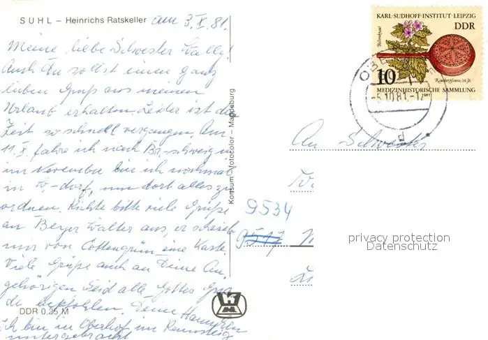 Suhl_Thueringer_Wald Heinrichs Ratskeller Suhl_Thueringer_Wald postalisch gelaufen 1981 Erhaltung siehe scans [WerneD78] WernPID7