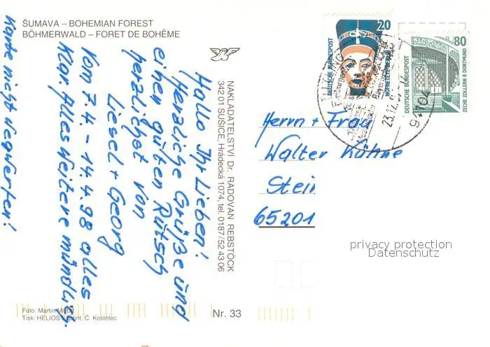 Sumava_Boehmerwald Bohemian Forest Sumava Boehmerwald postalisch gelaufen nach 1965 Erhaltung siehe scans [WerneD78] WernPID7