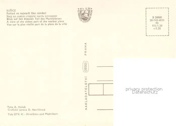 Susice aeltester Marktplatz Susice postalisch nicht gelaufen nach 1965 Erhaltung siehe scans [WerneD78] WernPID7