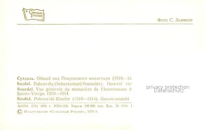 Suzdal Pokrovsky Monastery Suzdal postalisch nicht gelaufen 1921-1965 Keine Postkarte (siehe scan) Erhaltung siehe scans [NatalD47] Keine Postkarte (siehe scan) NataID47