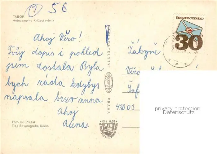 Tabor Autocamping Knizeci Rybnik Details Tabor postalisch gelaufen nach 1965 Erhaltung siehe scans [WerneD78] WernPID7