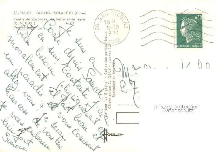 Taglio-Isolaccio Centre de vacances de loisirs et de repos vue aérienne Taglio-Isolaccio postalisch gelaufen 1971 Erhaltung siehe scans [FriedD77] Frierer