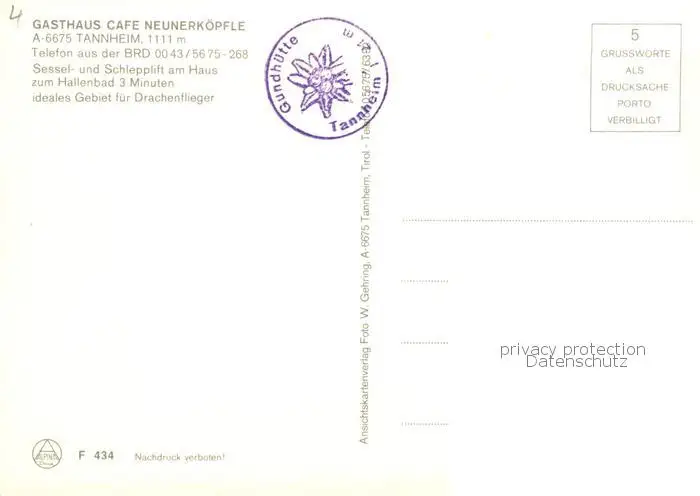 Tannheim_Tirol_AT Gasthaus Cafe Neunerkoepfle Drachenflieger postalisch nicht gelaufen nach 1965 Erhaltung siehe scans [WerneD78] WernPID7