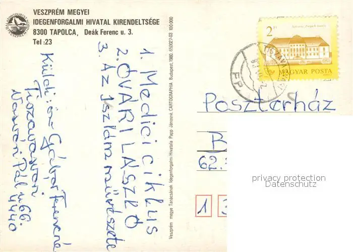 Tapolca Stadtplan Tapolca postalisch gelaufen nach 1965 Erhaltung siehe scans [KathaD81] Kathoren