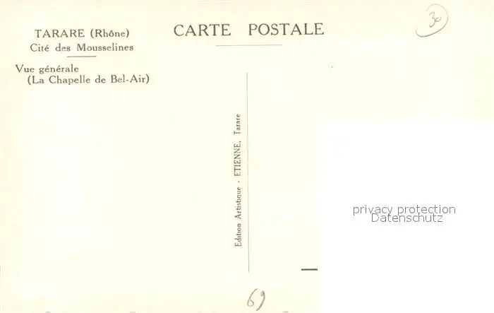 Tarare Cité des Mousselines vue générale Chapelle de Bel Air Tarare postalisch nicht gelaufen 1921-1965 Erhaltung siehe scans [FriedD77] Frierer