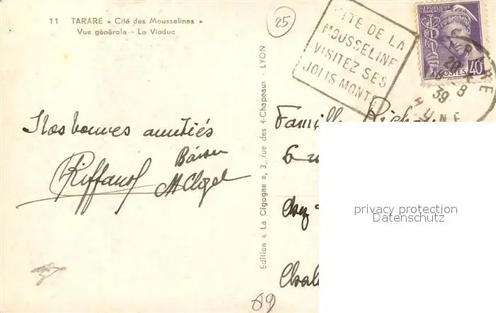 Tarare Panorama Viaduc Tarare postalisch gelaufen 1939 Erhaltung siehe scans [FriedD77] Frierer