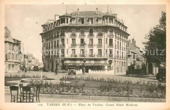 Tarbes Place de Verdun Grand H?tel Moderne Tarbes postalisch gelaufen 1921-1965 Erhaltung siehe scans [FriedD77] Frierer