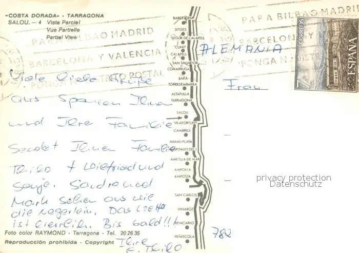 Tarragona_ES Strand-Ansicht Salou postalisch gelaufen nach 1965 Erhaltung siehe scans [LiesaD40] LiesID40