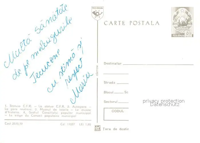 Tecuci Denkmal Autogara Tecuci postalisch nicht gelaufen nach 1965 Erhaltung siehe scans [LiesaD40] LiesID40