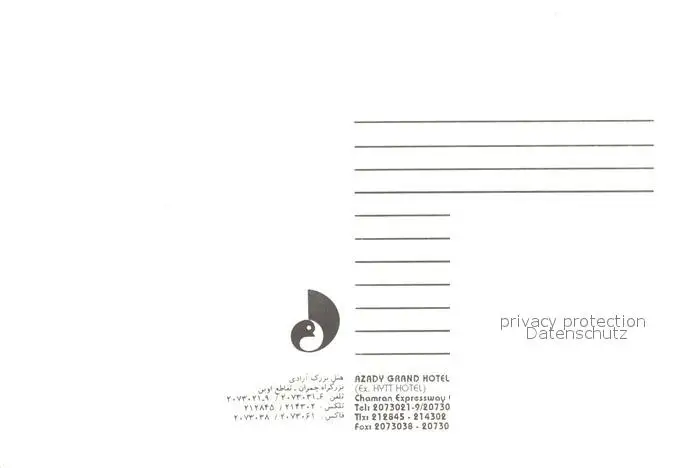 Teheran Azady Grand Hotel Teheran postalisch nicht gelaufen nach 1965 Erhaltung siehe scans [FriedD77] Frierer