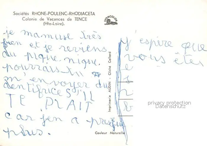 Tence Colonie de Vacances vue aérienne Tence postalisch nicht gelaufen nach 1965 Erhaltung siehe scans [FriedD77] Frierer