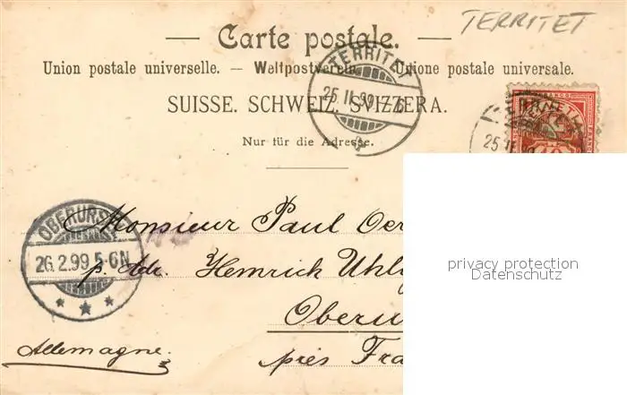 Territet Territet postalisch gelaufen 1899 Erhaltung siehe scans [LiesaD40] LiesID40