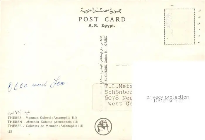 Theben_Egypt Memmon Colossi Theben Egypt postalisch nicht gelaufen nach 1965 Erhaltung siehe scans [LiesaD40] LiesID40
