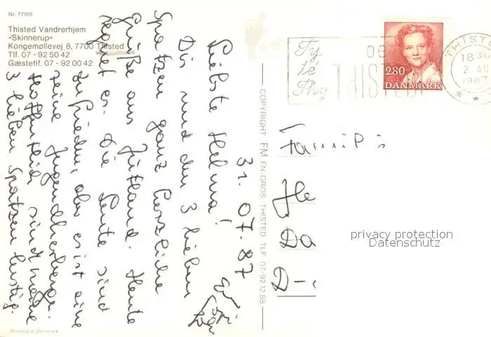 Thisted Vandrerhjem Skinnerup Thisted postalisch gelaufen 1987 Erhaltung siehe scans [NatalD47] NataID47
