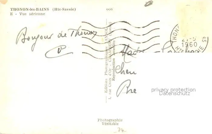 Thonon-les-Bains Vue aerienne Thonon-les-Bains postalisch gelaufen 1960 Erhaltung siehe scans [PaolaD17] PaolPID1