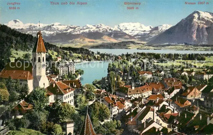 AK / Ansichtskarte Thun_BE Panorama Thunersee Alpen Thun_BE