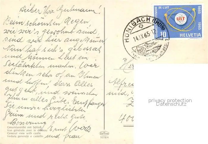 Thun_BE Schloss Thun_BE postalisch gelaufen 1965 Erhaltung siehe scans [KathaD81] Kathoren