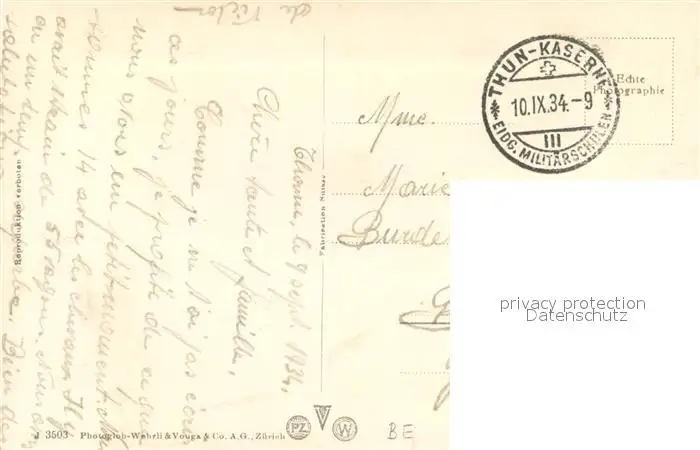 Thun_BE Stadtpanorama Aare Schloss Thun_BE postalisch gelaufen 1934 Feldpost - Stempel Erhaltung siehe scans [FriedD77] Feldpost - Stempel Frierer