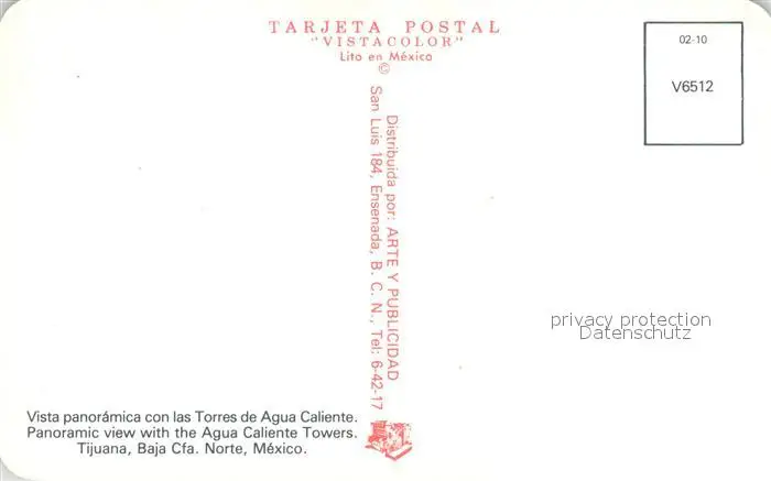 Tijuana Torres Agua Caliente Tijuana postalisch nicht gelaufen 1921-1965 Erhaltung siehe scans [NatalD47] NataID47