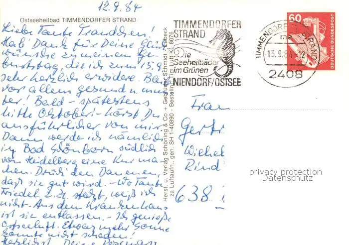 Timmendorfer_Strand Panorama Ostseeheilbad Timmendorfer_Strand postalisch gelaufen 1984 Fliegeraufnahme Erhaltung siehe scans [FriedD77] Fliegeraufnahme Frierer