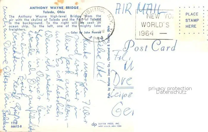 Toledo_Ohio Anthony Wayne Bridge Air view Toledo_Ohio postalisch gelaufen 1964 Erhaltung siehe scans [WerneD78] WernPID7